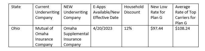 Mutual of Omaha has filed new, lower rates in several states (see 2nd chart below). I am happy to announce we have approval in Ohio!