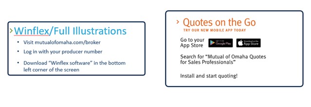 The Mutual of Omaha Term Life Express product line offers simplified underwriting for ages 18-70 with face amounts from $25k to $300k (up to age 50). Quoting options include traditional website using your Mutual of Omaha producer number. Quotes on the Go, a New Mobile App is now available for download and quote today!